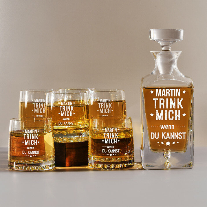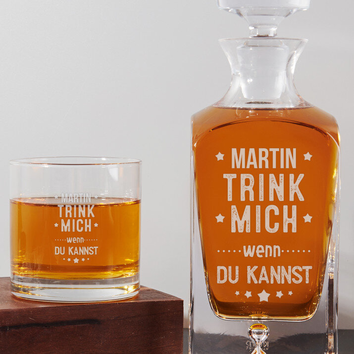 Set mit gravierter Karaffe und Whisky-Gläsern in vier Optionenerhältlich:Karaffe + 1 Glas