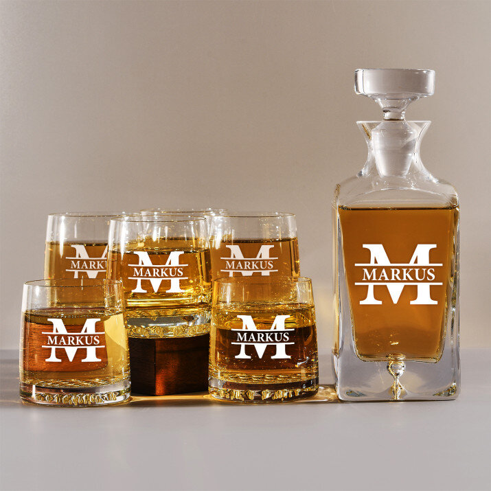 Set mit gravierter Karaffe und Whisky-Gläsern in vier Optionenerhältlich:Karaffe + 1 Glas